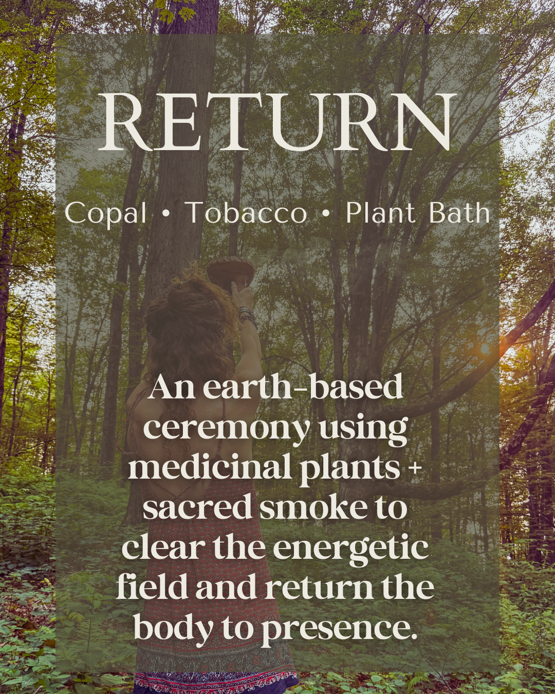 An earth-based ceremony using medicinal plants and sacred smoke to clear the energetic field and return the body to presence.